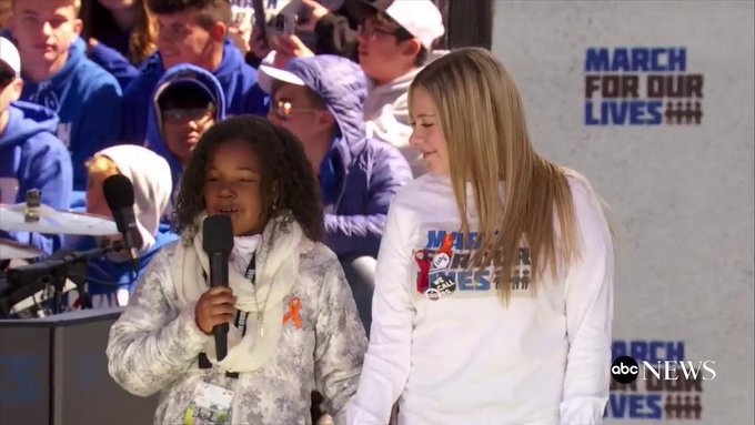 Trong bài phát biểu của mình, cô đã đọc tên của những người chết ở Parkland, sau đó cùng đám đông giữ im lặng hơn sáu phút, khoảng thời gian mà tay súng hạ sát các học sinh.